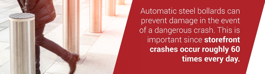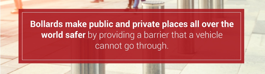 - Safety: Automatic bollards help make public and private places worldwide safer by providing a barrier and additional security system that a vehicle cannot go through. This perimeter security measure can make storefronts, bike paths and sidewalks safer for pedestrians. With bollards in place, drivers can either run off the road and quickly cause a tragedy, either unwittingly or as an act of terrorism.