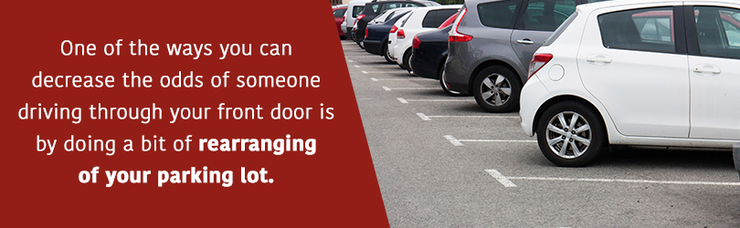 One of the ways you can decrease the odds of someone driving through your front door is by doing a bit of rearranging of your parking lot. Picture a gas station, convenience store, restaurant or bar. Think about all the times you’ve seen parking spots that require the nose of the car to be pulled directly up to the building itself. While it might not seem obvious, there’s a huge risk involved here.