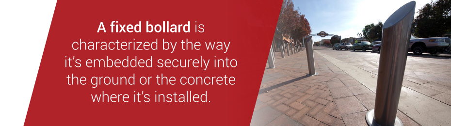 You might also hear this type of bollard referred to as embedded or permanent. The key characteristic of this bollard variety is how it embeds securely into the ground or the concrete. This embedding typically gives the bollard a little extra strength and security.