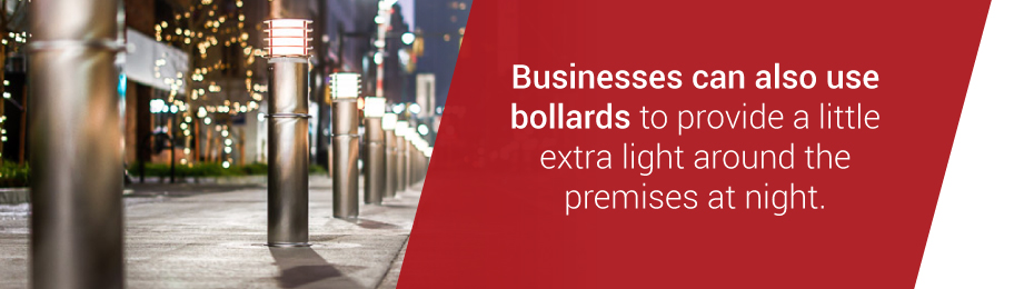 In addition to businesses using bollards in their standard landscaping and sidewalk applications, they can also use them to provide extra light around the premises at night. This might be particularly important if the business is in a somewhat isolated location without a lot of light from neighboring businesses.