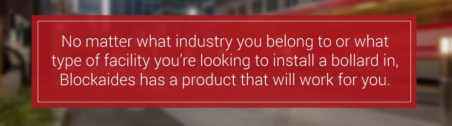 No matter what industry you belong to or what type of facility you’re looking to install a bollard in, Blockaides has both the experience and the product offering to provide the best solution for your project. We offer an assortment of different types of bollards, as well as a variety of materials and finishes. We also offer caps and other accessories so you can customize your bollards to fit your unique needs.