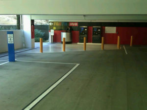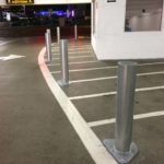 The Pay-On-Foot machines located on L8 received a much-needed safety upgrade. The two pay stations are located against the wall nearest the elevators, leaving patrons utterly defenseless with their backs to approaching vehicles. Brookfield wanted to protect first and foremost the patrons as well as their equipment from vehicular traffic. Since these pay stations are on the eighth floor of a post-tension slab parking structure, core drilling large bollards or barriers is not a viable option. Blockaides designed and engineered a unique solution to address these safety concerns as well as the limitations for installation in the parking structure. The BarricAide™ is a steel platform that the machines sit on, with steel bollards built into the platform framework to provide protection. When being struck by a vehicle, the BarricAide is engineered to absorb impact energies and transfer them horizontally through the framework of the product and into the wall of the parking structure. This innovative parking garage safety solution gives any parking structure owner the flexibility to install pay stations virtually anywhere and be confident that safety has not been compromised.